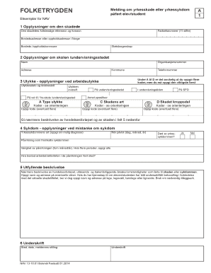 Last ned gratis NAV skjema for yrkesskade – bruk ved alle meldingspliktige skader som oppstår i arbeid i Norge eller utlandet. Enkel og rask utfylling.