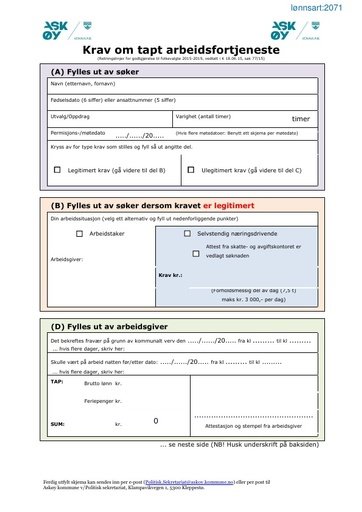 Last ned gratis tapt arbeidsfortjeneste ledsager skjema for kost, overnatting og tapt arbeidsinntekt. Fyll enkelt ut antall døgn du søker om i skjemaet.