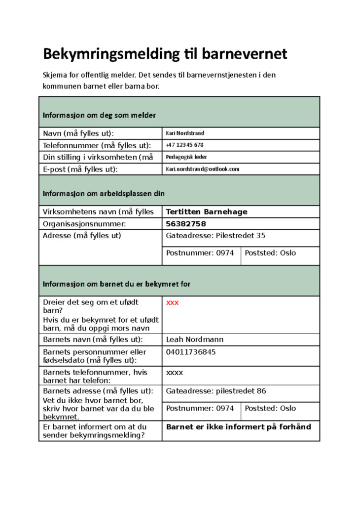 Last ned gratis bekymringsmelding til barnevernet skjema for offentlig melder. Enkelt utfyllbart skjema til bruk i barnevernstjenesten i barnets kommune.