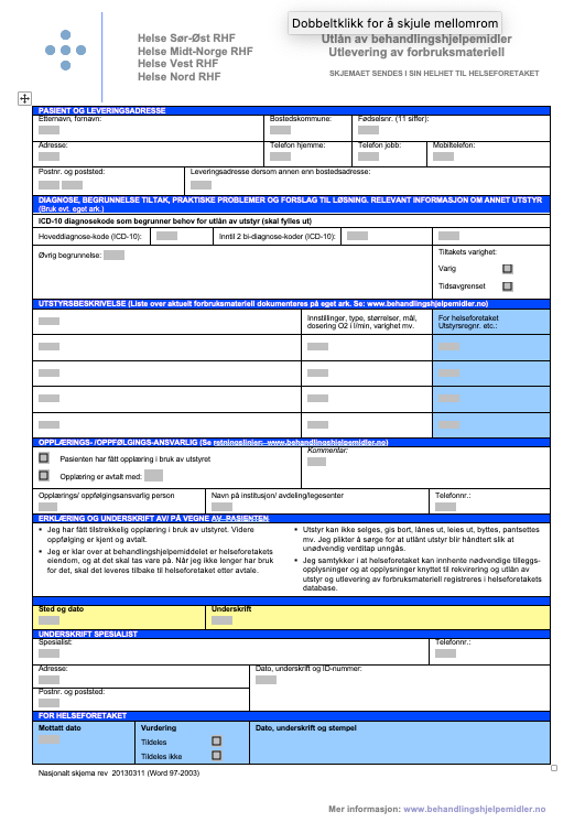Last ned gratis behandlingshjelpemidler skjema for enkel søknad. Kontakt ditt nærmeste helseforetak for spørsmål om behandlingshjelpemidler og tilhørende forbruksmateriell.