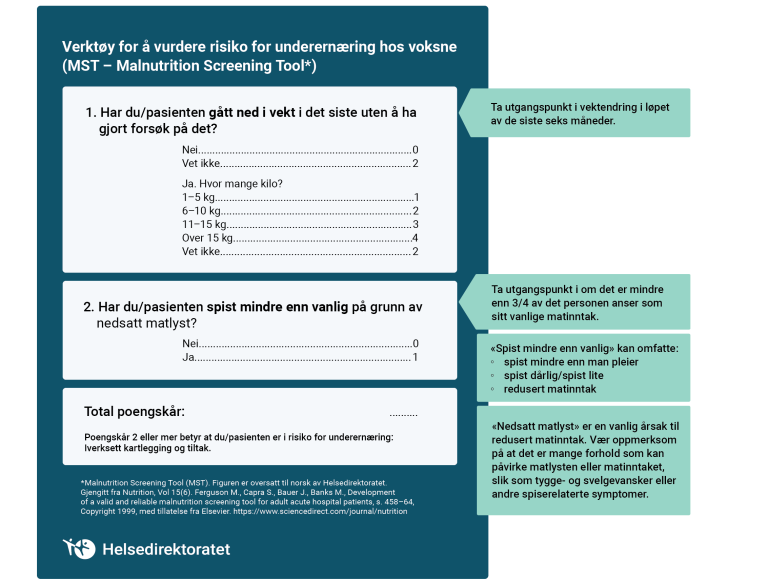 Last ned gratis ernæringskartlegging skjema for enkel og rask evaluering. Fyll ut poeng for hvert spørsmål og få en samlet vurdering av ernæringsstatus.