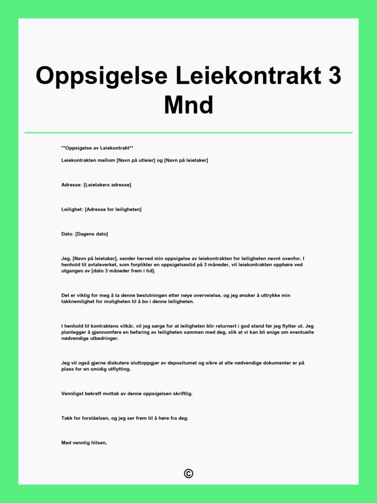 Last ned gratis avslutte leieforhold skjema for enkel og juridisk korrekt oppsigelse av leiekontrakt. Spar tid og unngå problemer med vår brukervennlige mal.