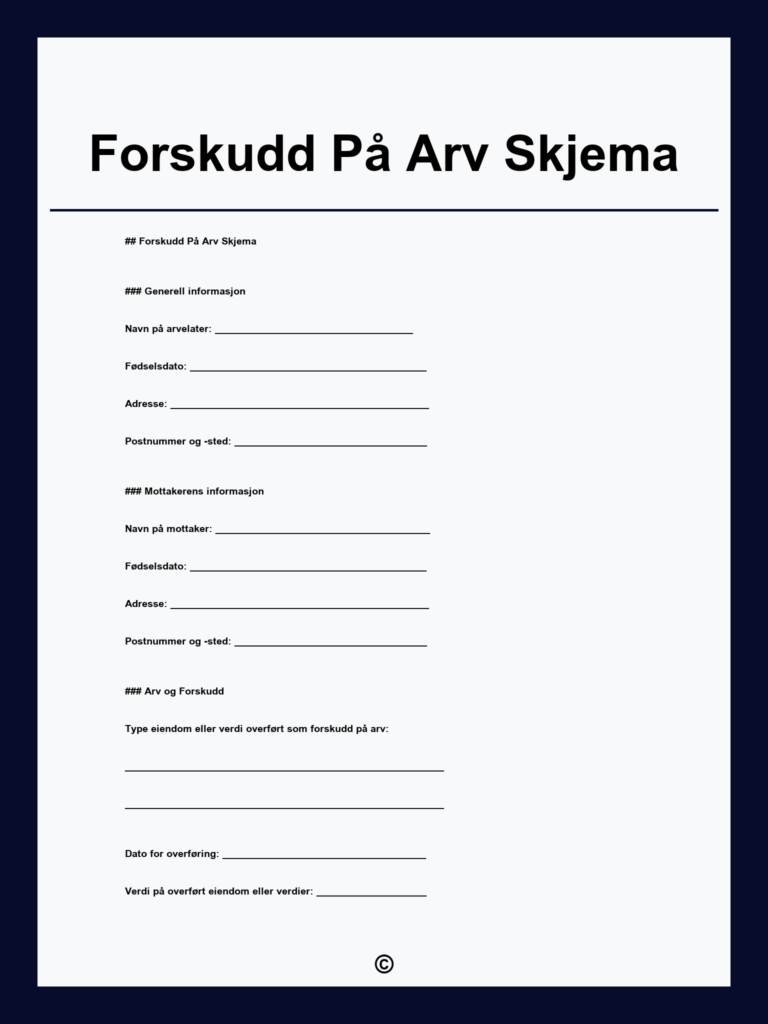 Last ned gratis forskudd på arv skjema fra Skatteetaten. Enkel utfylling etter arveloven § 74 for korrekt avslag på falt arv og arvefordeling ved dødsfall.