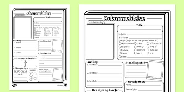 Last ned gratis bokanmeldelsesskjema for barn og hjelp dem å uttrykke hva de synes om boken, hvorfor, og hvem den passer for på en enkel og morsom måte.